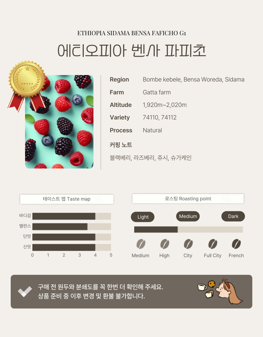 에티오피아 시다마 벤사 파피초 G1 [커피 어워드 입상]